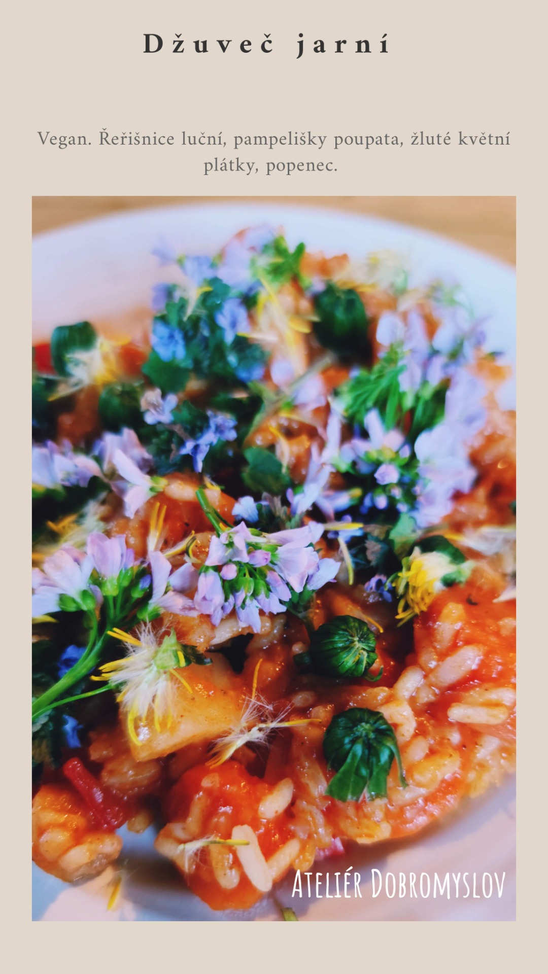 Od jara používáme bršlici, čerstvý libeček, petržel, česnáček, na obrázku je i jarní popenec a řeřišnice.